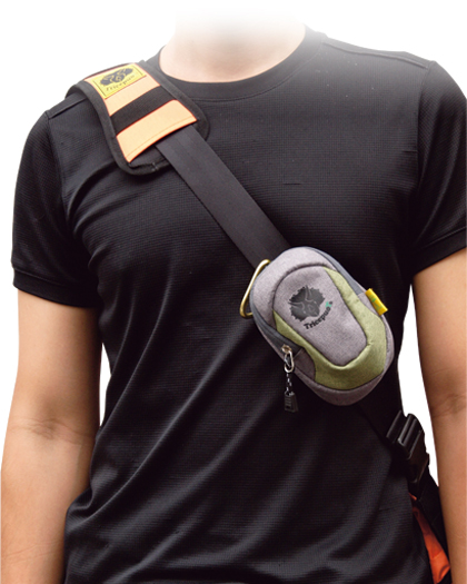 縦横2通りの取り付けべルトを採用しバッグのショルダーべルトやウエストべルトに簡単に取り付けて使用できるコンパクトサイズのポーチ