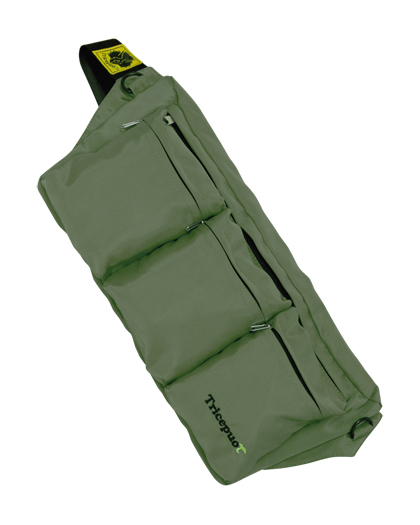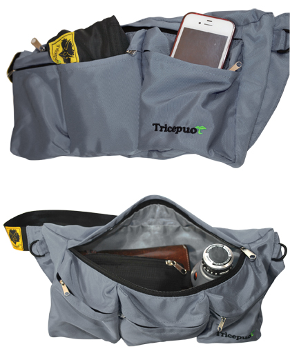 前面に3つのポケットがついて小物を分けて収納できる便利なウエストバッグ。