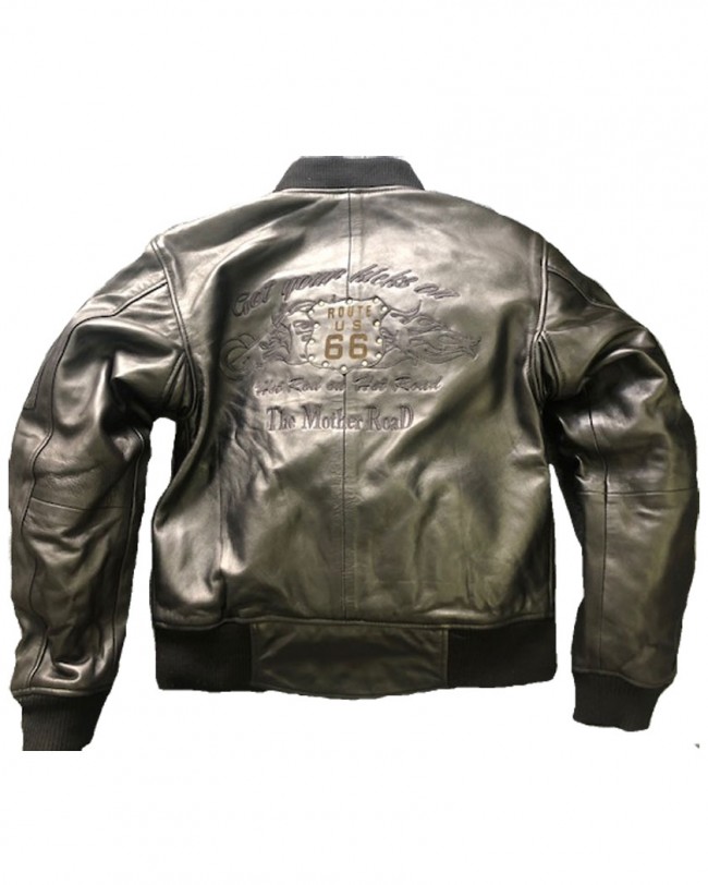 アメリカのファッションカルチャーの歴史を築いてきた大きなエレメントの一つであるルート66ブランドのレザージャケット。定番のMA-1タイプのジャケットはシープレザー仕様で羽織りやすく柔らかな風合いです。センターファスナーの裏当てがしっかりとしているので防風性も高い仕様です。肩、肘、背中にはプロテクターを収納できるポケットも付属しています。