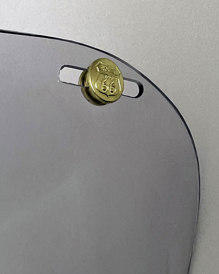 シールドとバックベルトのボタンには66ロゴ刻印オリジナルドットを使用。