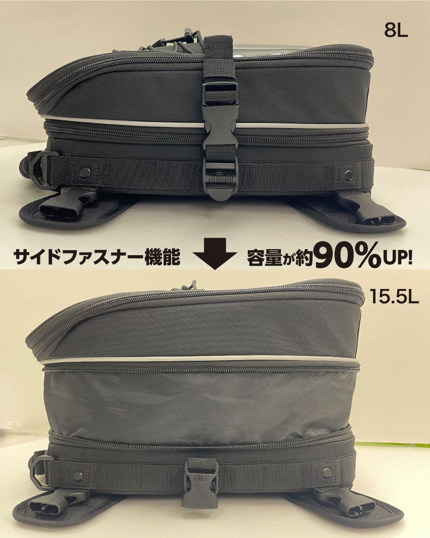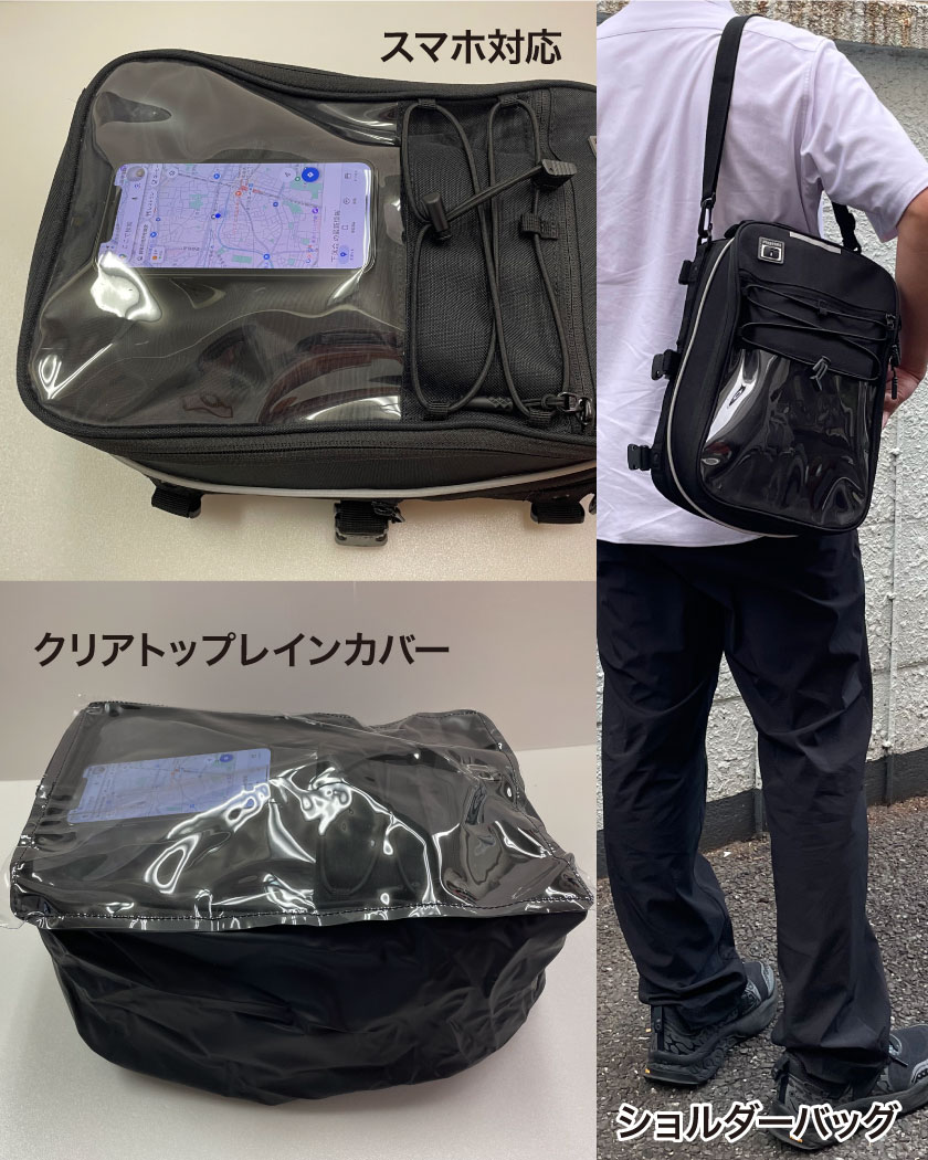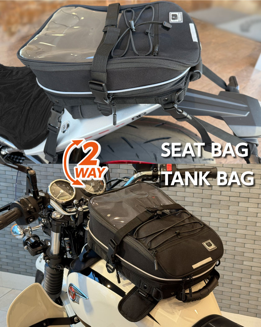 タンクバッグにもシートバッグにも変形する二刀流のお得なバッグ。
