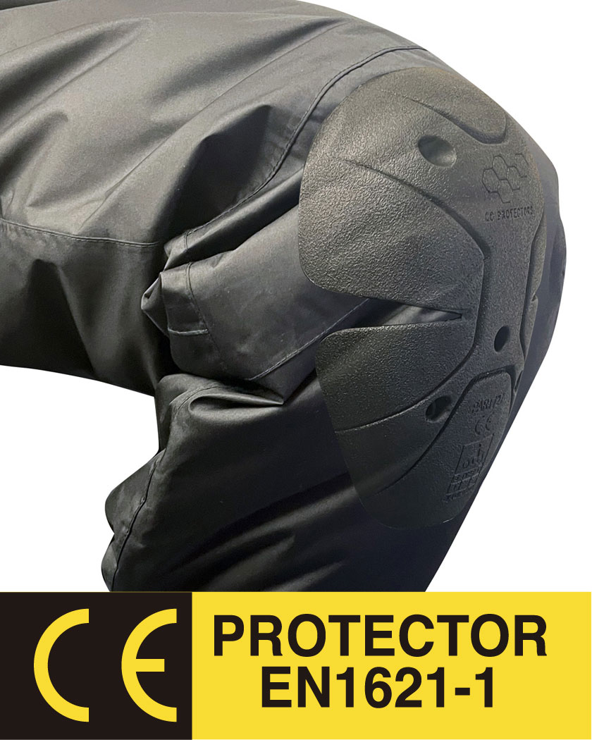 膝にはCE規格適合のプロテクター、腰にクッション、足首にはリフレクターと安全性も高水準です。