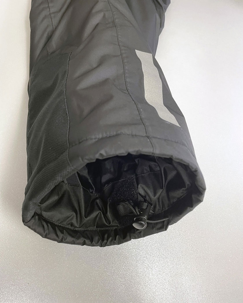 足首はコードで搾れるパラシュートパンツ設計で巻き込み風を防止します。