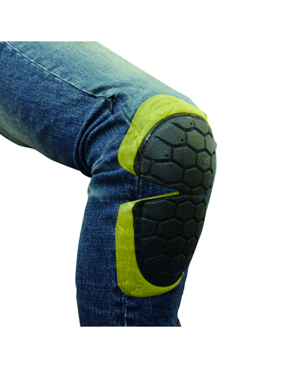 ユーズド加工されたストレッチデニムを使用したプロテクションパンツは、CE規格適合のプロテクターを使用し高い安全性を発揮しながらも普段着感覚で使えコーディネートの幅も広がります。プロテクターは、膝脇のファスナーで着用しながら着脱が可能です。